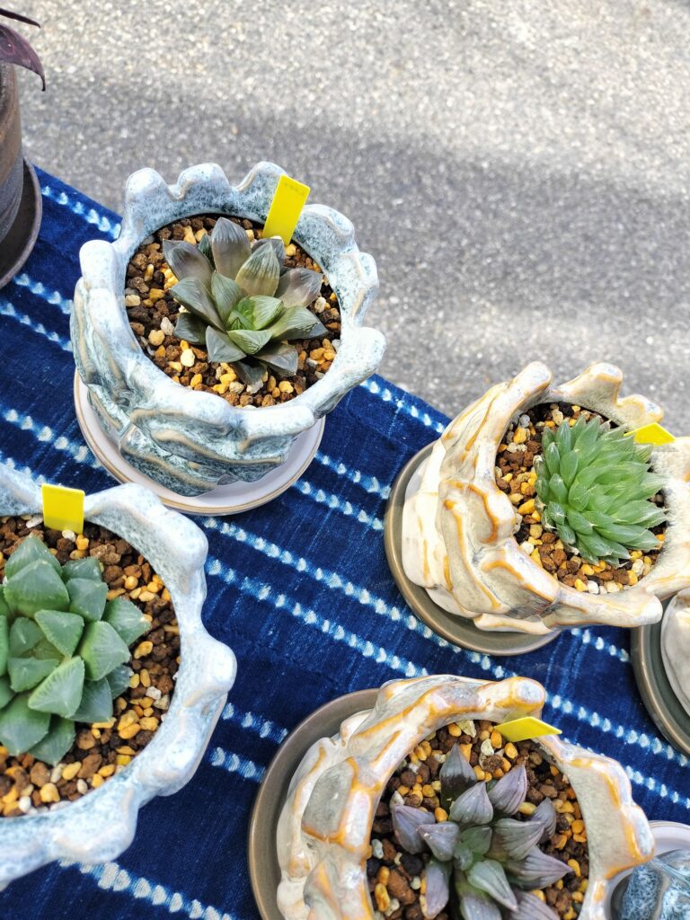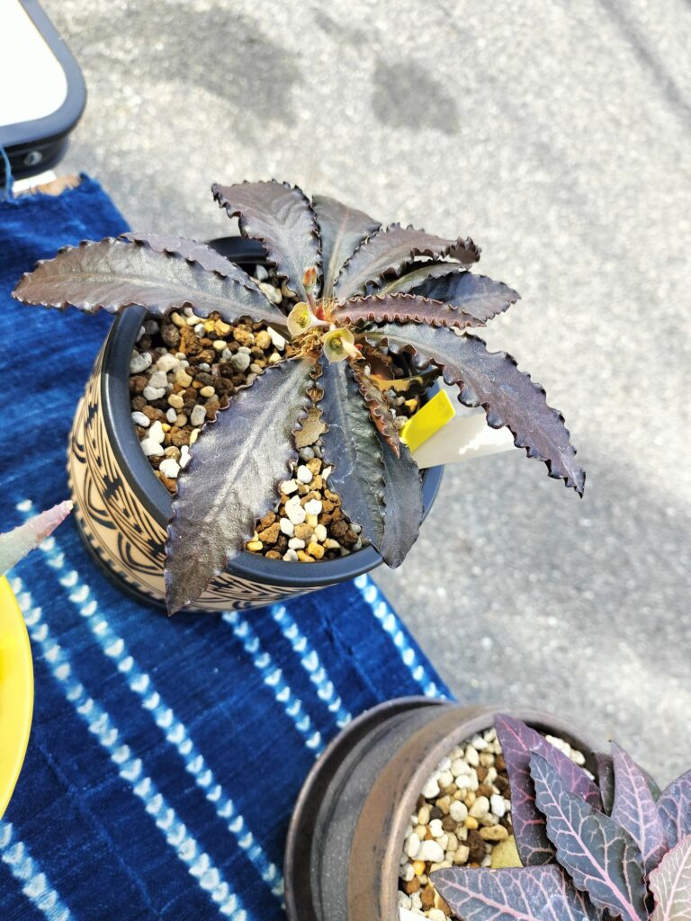 某ご縁から、安くて見目良い鉢を手に入れたので、いつも樹祭などイベントでお世話になっているここくん、あーすさん、ぱんささんから、植物を買って、鉢に植え替えて!自分の植物持って!いざ出店∆∆∆